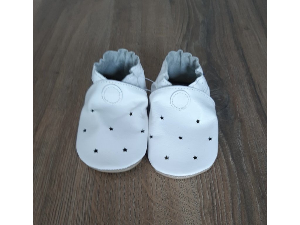 Hófehér csillag mintázatú kinti/benti puhatalpú babacipő – strapabíróbb prémium bőrt és csúszásmentes gumitalpat kombinálja, ideális kültéri és beltéri használatra is. Praktikus választás aktív kisgyermekeknek már 6 hónapos kortól 4 éves korig.